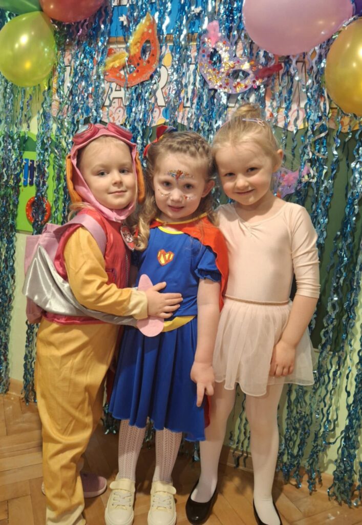 Sale zamieniły się w bajkową krainę, a mali uczestnicy zachwycali pomysłowymi strojami i szerokimi uśmiechami 🙂 Były tańce, zabawy, śmiech i niezapomniane chwile, które na długo zostaną w naszej pamięci 💖
