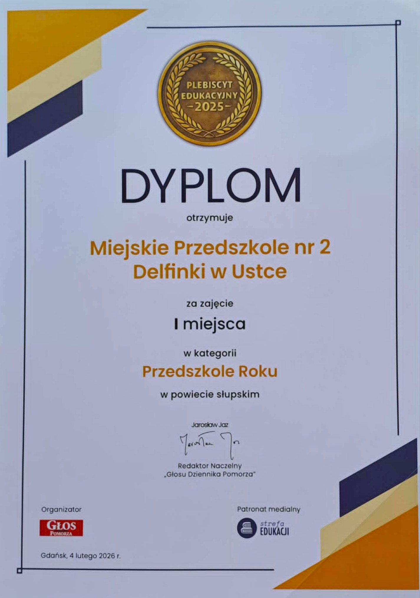 Z ogromną radością i dumą informujemy, że nasze przedszkole zdobyło I miejsce w powiecie słupskim w kategorii „Przedszkole Roku 2025” 🏆